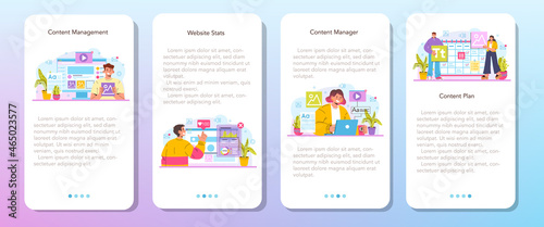 The watermark will not be included on Wall mural.: Content manager mobile application banner set - idea of digital promotion
