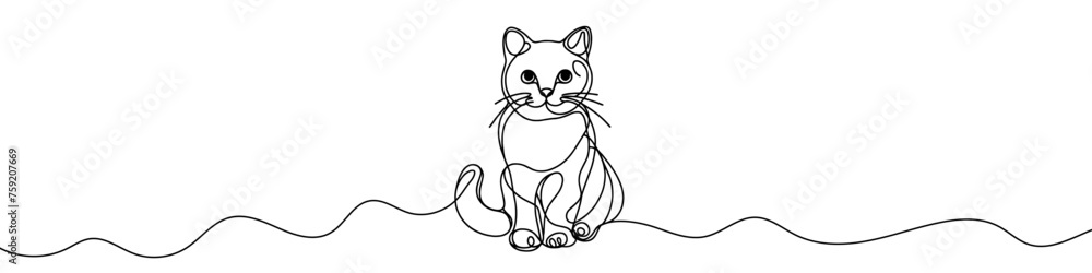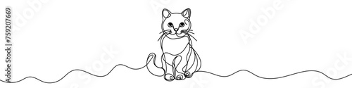 The watermark will not be included on Wall mural.: Continuous editable line drawing of cat - cat icon in one line -