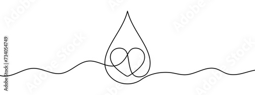 The watermark will not be included on Wall mural.: Continuous editable line drawing of water drop and heart shape - single line water drop icon -