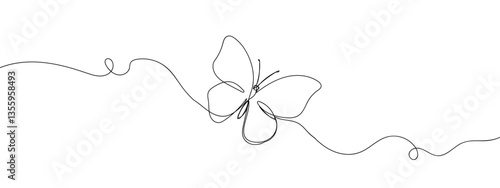 Wall mural continuous line, simple butterfly with transparent background editable stroke.