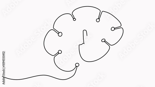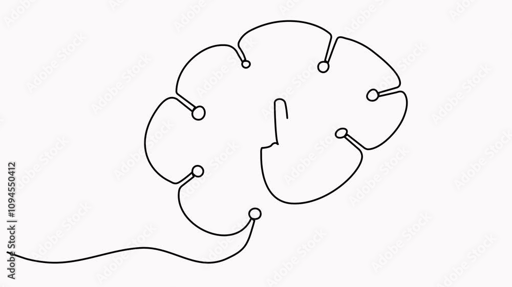 The watermark will not be included on Wall mural.: Continuous line drawing head artificial intelligence technology robot brain animated video -