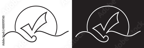 The watermark will not be included on Wall mural.: Continuous line drawing of checkmark - one continuous line tick - continuous line drawing of tick - che