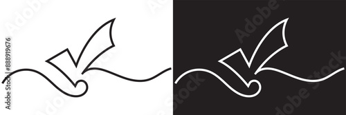 The watermark will not be included on Wall mural.: Continuous line drawing of checkmark - one continuous line tick - continuous line drawing of tick - che