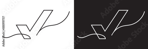 The watermark will not be included on Wall mural.: Continuous line drawing of checkmark - one continuous line tick - continuous line drawing of tick - che