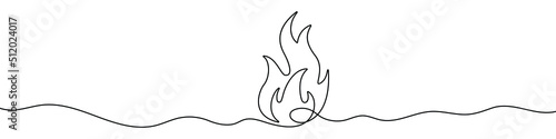 Wall mural continuous line drawing of fire. flame linear icon. one line drawing background. vector illustration