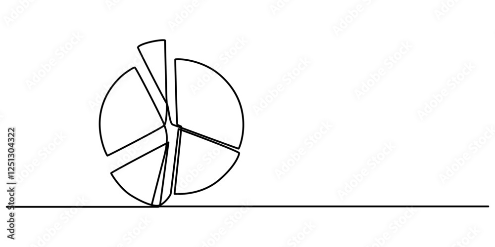 Wall mural continuous line drawing of pie chart and arrow growth up, business concept sketch object one line, s - Wall murals Wall mural continuous line drawing of pie chart and arrow growth up, business concept sketch object one line, s - Wall murals
