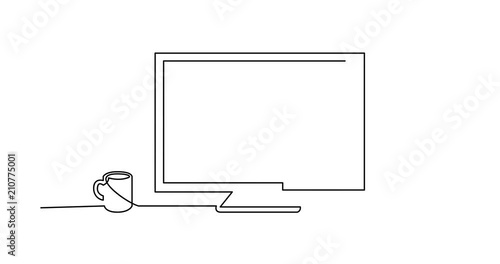 Wall mural continuous line drawing of work desk computer and coffee - Wall murals Wall mural continuous line drawing of work desk computer and coffee - Wall murals