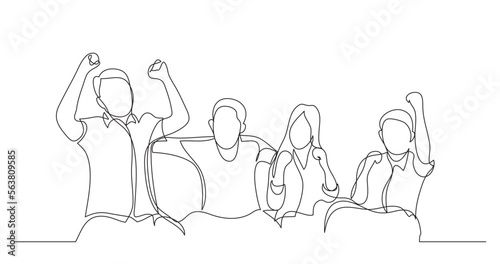 The watermark will not be included on Wall mural.: Continuous line drawing vector illustration with fully editable stroke of group of cheering happy fr