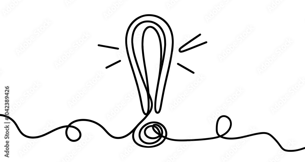 Continuous linear drawing of exclamation mark - one line drawing exclamation mark - exclamation mark iWall mural