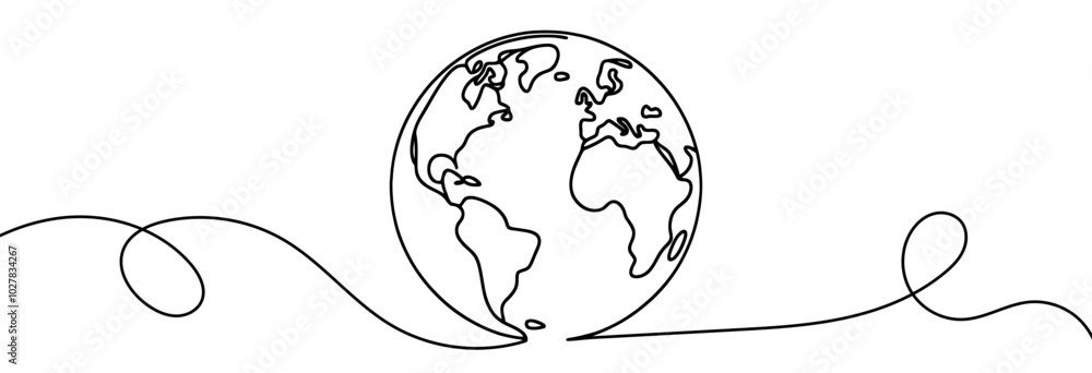 The watermark will not be included on Wall mural.: Continuous linear drawing of the globe - single-line drawing of the earth - globe in one line style - v