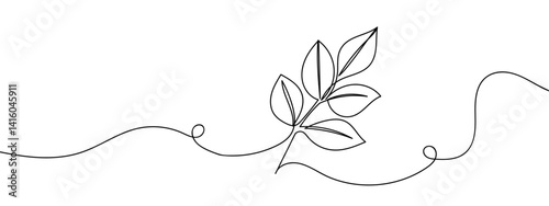 Wall mural continuous lines, branches, leaves line art vector illustration with background editable stroke.