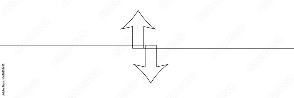 The watermark will not be included on Wall mural.: Continuous one line drawing of arrow pointing up and down - black thin line of two directions arrow i