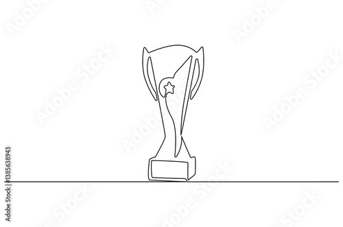The watermark will not be included on Wall mural.: Continuous one line drawing of award trophy cup - single line drawing illustration of trophy cup comp