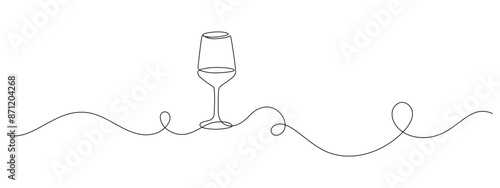 The watermark will not be included on Wall mural.: Continuous one line drawing of glass of wine - champagne toast and cheers in simple linear style - alc