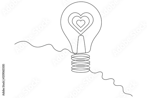 The watermark will not be included on Wall mural.: Continuous one simple single line art of light bulb with heart icon outline vector