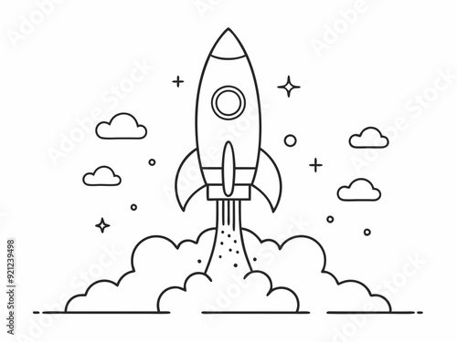 Wall mural continuous single line drawing of rocket spaceship takeoff, rocket launch line art vector illustrati - Wall murals Wall mural continuous single line drawing of rocket spaceship takeoff, rocket launch line art vector illustrati - Wall murals