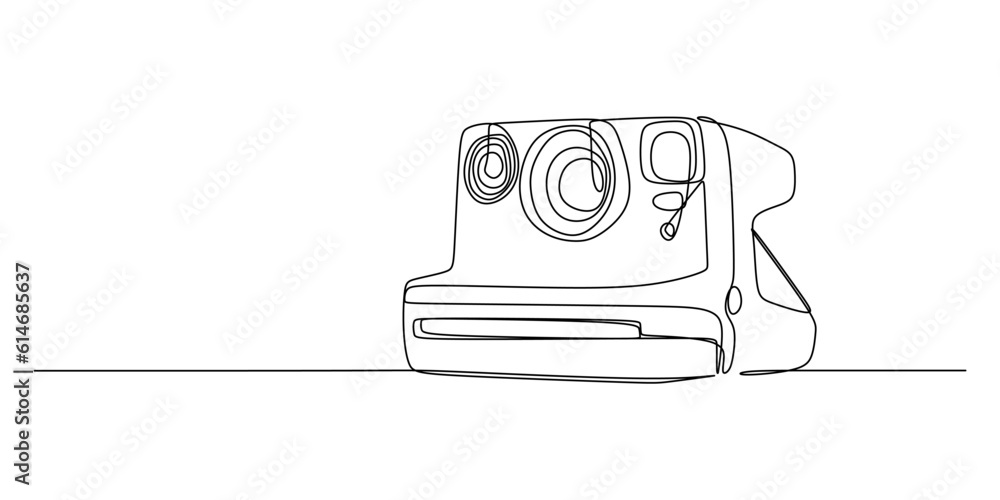 Wall mural continuous single one line of polaroid camera isolated on white background.