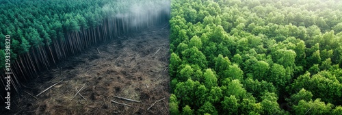 Wall mural contrast of deforested land and lush forest highlights the importance of nature conservation in envi - Wall murals Wall mural contrast of deforested land and lush forest highlights the importance of nature conservation in envi - Wall murals