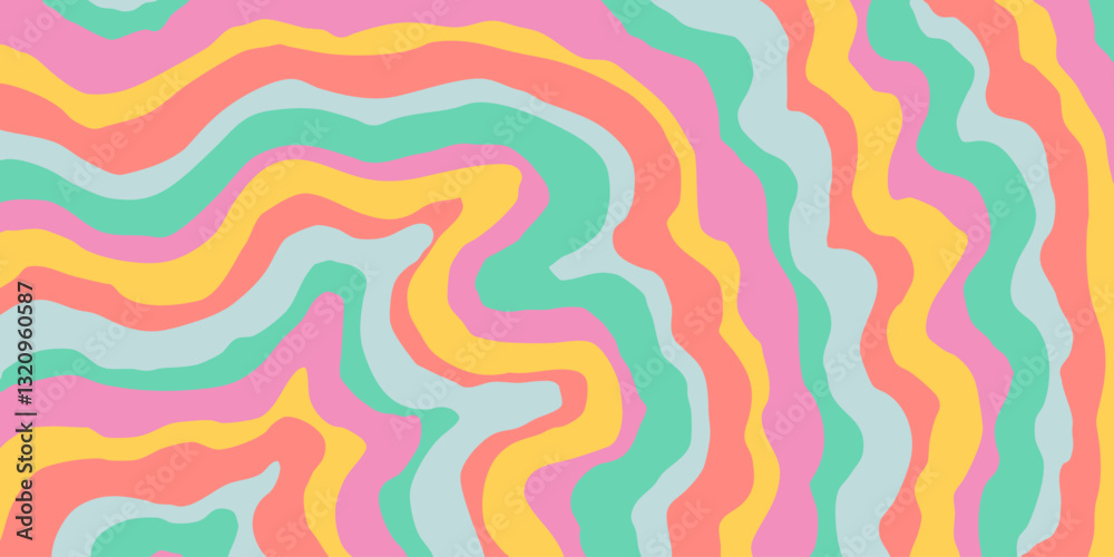 The watermark will not be included on Wall mural.: Cool y2k abstract colorful wavy texture vector design art - groovy psychedelic rainbow pattern - tripp