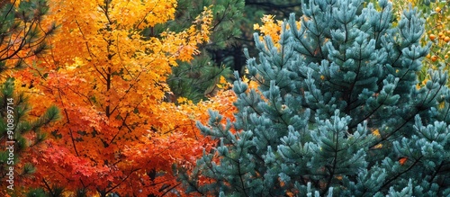 Wall mural copy space image of pine and maple trees - Wall murals Wall mural copy space image of pine and maple trees - Wall murals