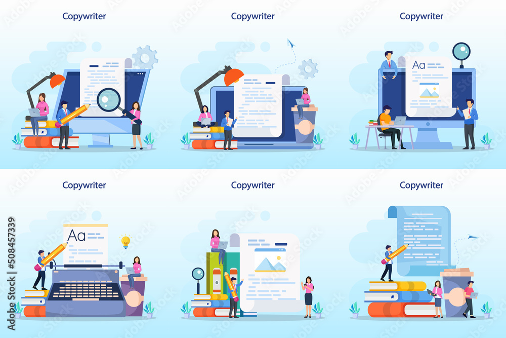 The watermark will not be included on Wall mural.: Copywriter web banner or landing page set - idea of writing texts flat vector