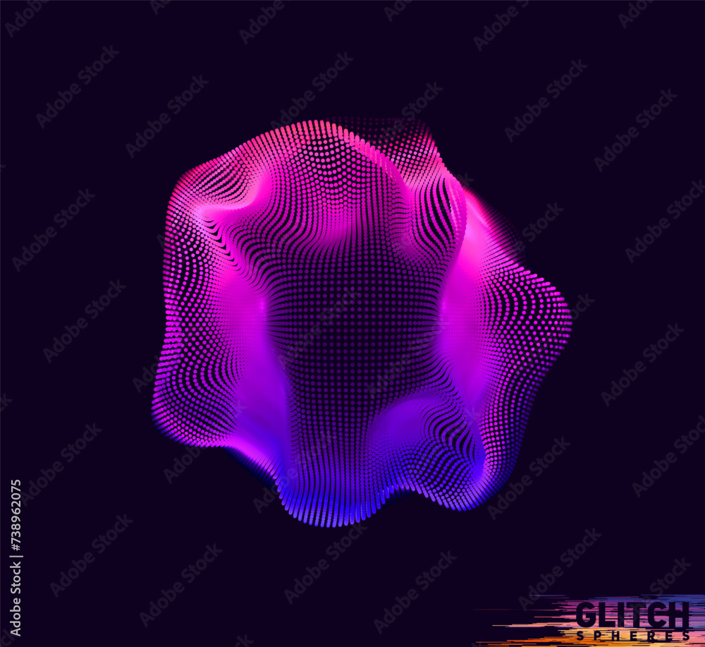 Wall mural corrupted violet point sphere. abstract vector colorful mesh on dark background. futuristic style ca