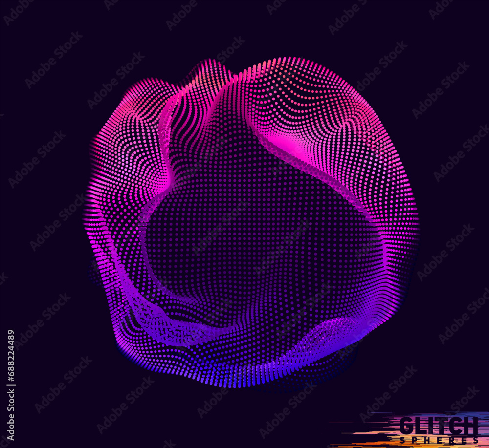 The watermark will not be included on Wall mural.: Corrupted violet point sphere - abstract vector colorful mesh on dark background - futuristic style ca