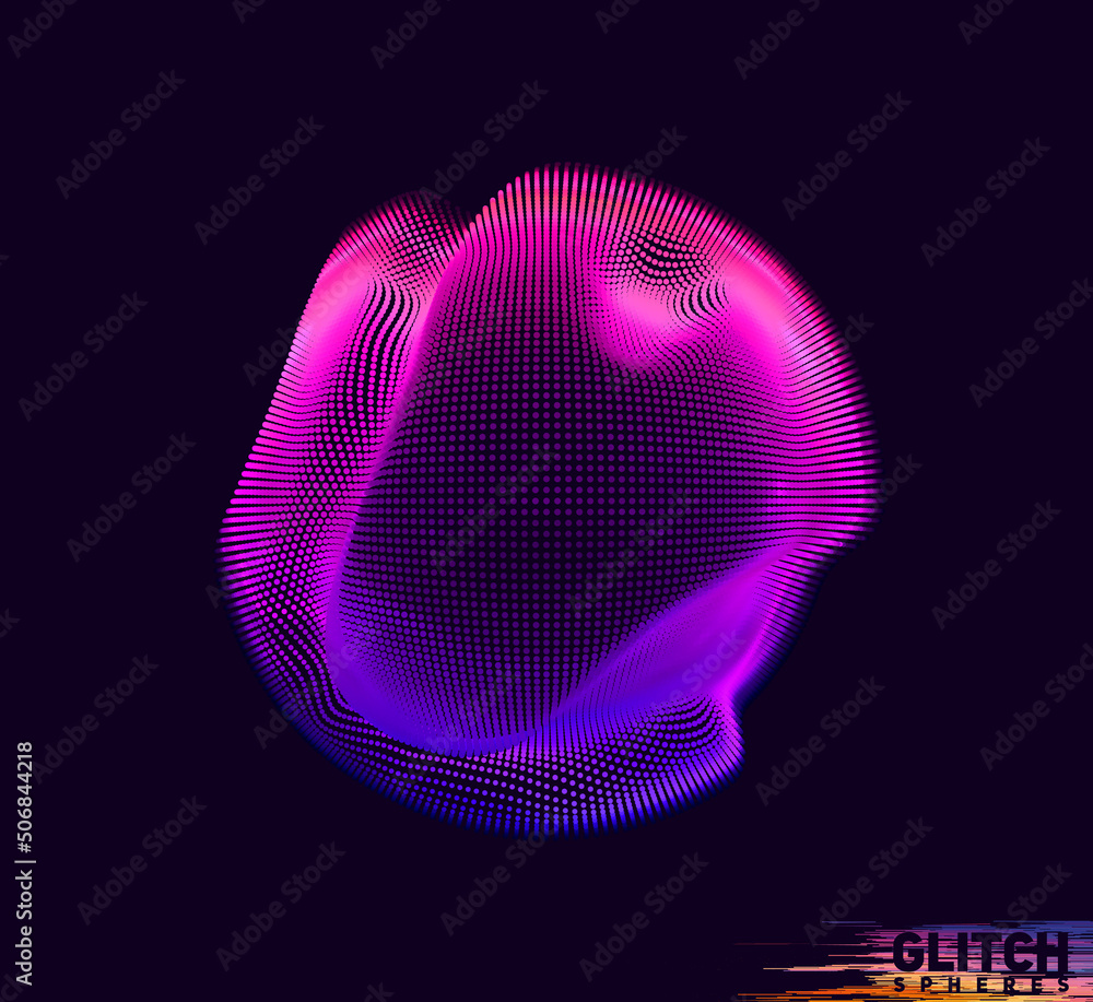 Wall mural corrupted violet point sphere. abstract vector colorful mesh on dark background. futuristic style ca