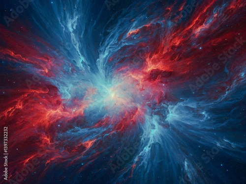 The watermark will not be included on Wall mural.: Cosmic abstract background with blue and red hues in a dynamic design -