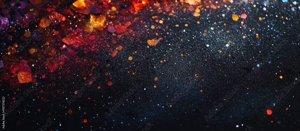 The watermark will not be included on Wall mural.: Cosmic abstract background with dark starry sky and vibrant color splashes ideal for text overlay an