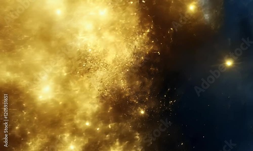 The watermark will not be included on Wall mural.: Cosmic abstract background with golden and blue hues, depicting a swirling galaxy filled with sparkl