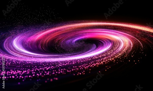 Wall mural cosmic abstract design with swirling purple and pink neon light, glowing particles creating a dynami