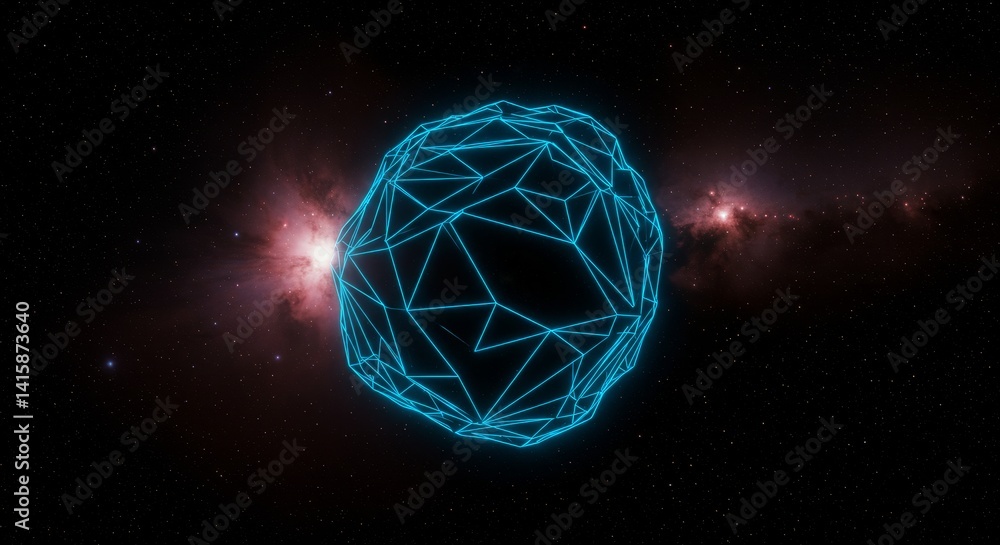 Cosmic asteroid wireframe design - abstract cosmic artwork featuring a wireframe asteroid in space, Wall mural