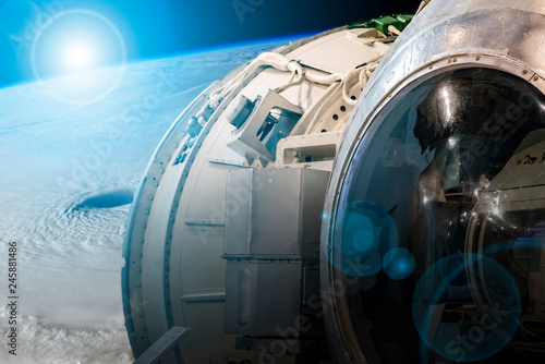 Wall mural cosmic auto station in outer space. galaxy view b. elements of this image furnished by nasa
