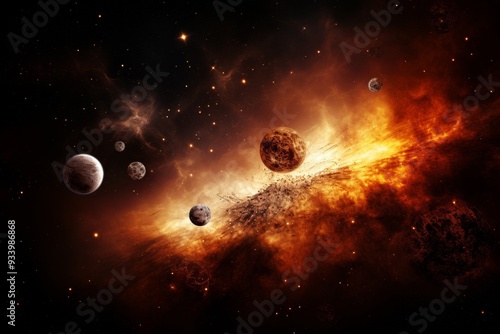 The watermark will not be included on Wall mural.: Cosmic collision: planets in a fiery nebula