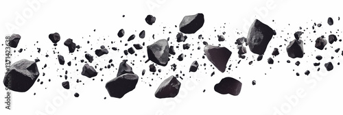 Wall mural : Cosmic debris: a dynamic display of asteroids and celestial bodies traversing the void of space, sho