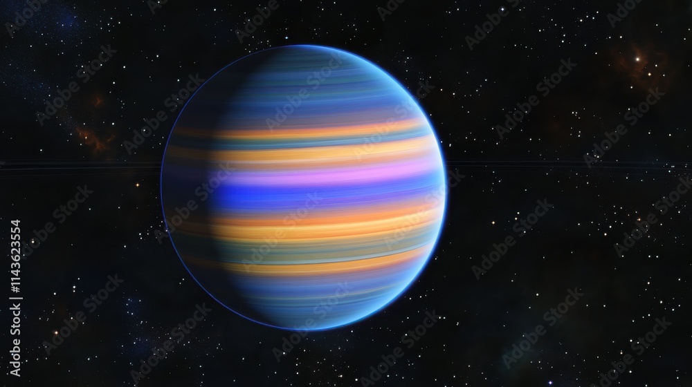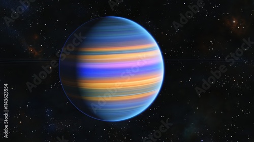 The watermark will not be included on Wall mural.: Cosmic display of a vibrant gas giant with colorful bands orbiting in deep space