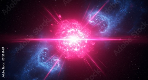 Cosmic energy burst - a vibrant pink and blue nebula with a bright central explosion, ideal for scieWall mural