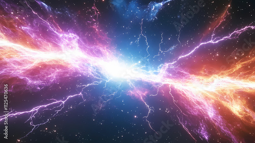 The watermark will not be included on Wall mural.: Cosmic enigma: stunning 3d render of a colorful supercluster of galaxies with cinematic lightning di
