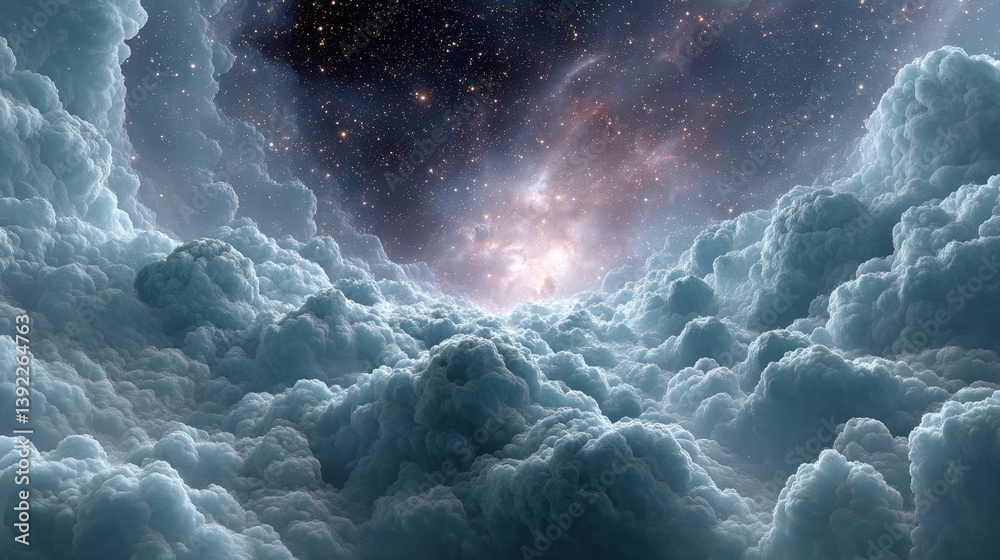Wall mural : Cosmic entity composed entirely of shifting fractals in ethereal cloudy atmosphere
