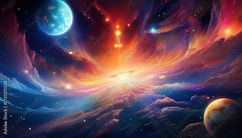 Wall mural cosmic explosion event outer space digital art universe ethereal
