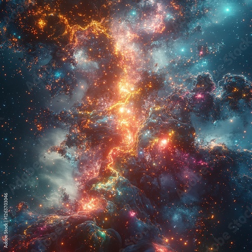The watermark will not be included on Wall mural.: Cosmic explosion of colors outer space digital art nebula environment wide-angle view celestial wond