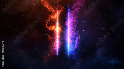 Cosmic fire, two vertical columns, nebula background, abstract designWall mural