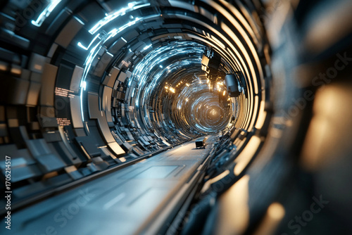 Wall mural cosmic gateway visualized as spiraling streams of lights and energy creating an infinite tunnel effe