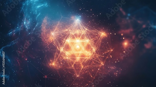 Wall mural cosmic geometry: 3d render of a sacred geometry structure in a nebula. ai generated - Wall murals Wall mural cosmic geometry: 3d render of a sacred geometry structure in a nebula. ai generated - Wall murals