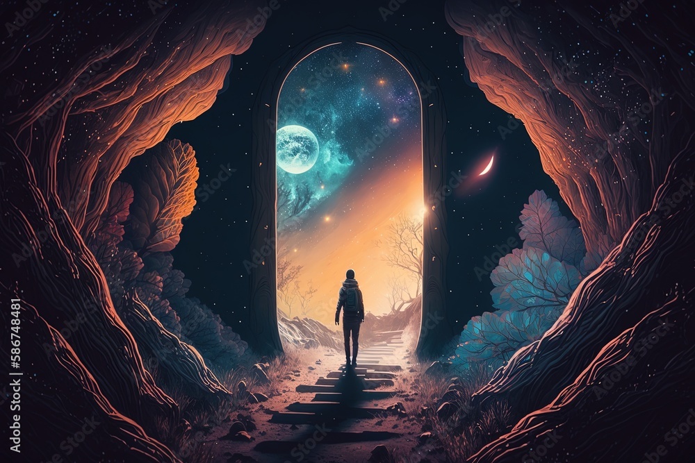 The watermark will not be included on Wall mural.: Cosmic journeying - exploring a luminous dreamscape generative ai