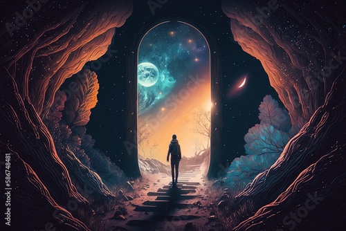 Wall mural : Cosmic journeying - exploring a luminous dreamscape generative ai