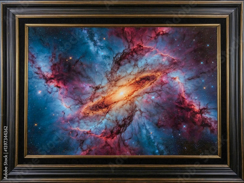 Wall mural cosmic nebula framed by high-tech metallic borders. - Wall murals Wall mural cosmic nebula framed by high-tech metallic borders. - Wall murals