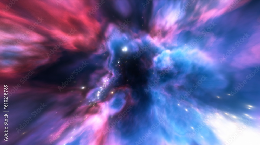 The watermark will not be included on Wall mural.: Cosmic nebula in space among stars and galaxies - gas dust clouds nebula in outer space - birth and ex