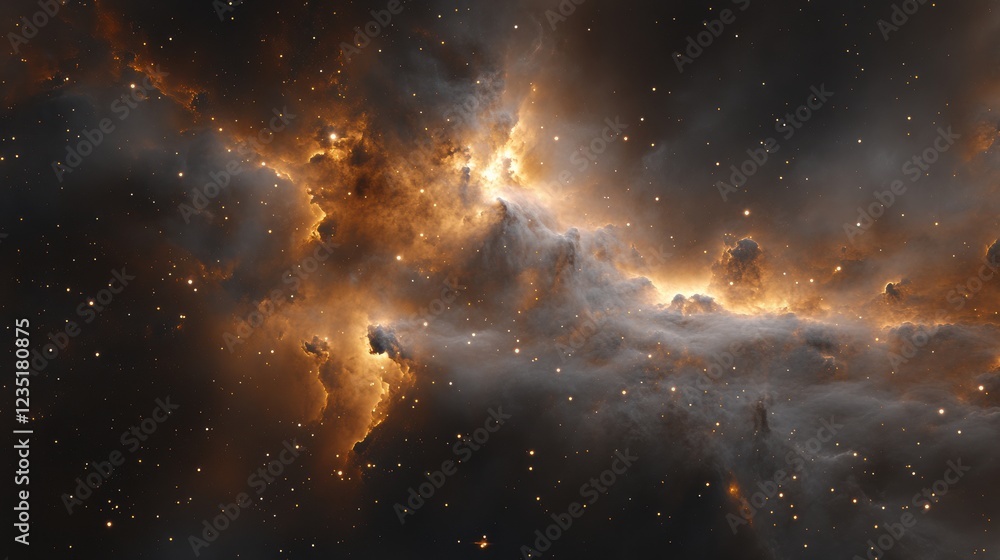 The watermark will not be included on Wall mural.: Cosmic nebula with fiery clouds and stars in deep space universe